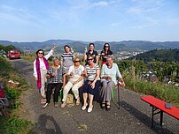 Am 19. September besuchten wir nun „unseren“ Literaturstein oben am Weinberg. Mit einem grandiosen Blick auf die Moos feierten wir die deutsch-französische Freundschaft mit einem Glas Sekt.