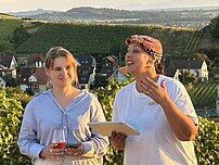 Im wunderschönen gelegenen Weinberg von Vivien Holzmann trafen wir uns an einem Sommerabend, um die Winzerin als neues Mitglied in unsere Frauennetzwerk aufzunehmen. Es gab natürlich leckeren Herzwerk-Wein, mitgebrachte Köstlichkeiten vom Buffet und zwei tolle Reden der beiden Patinnen Jannate und Lena.